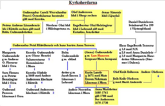 Länsmannen Mats Ersson Nohrman avled den 30 okt 1698 i Noret, Mora socken.Vigd den 3 dec 1671 i Noret, Mora socken med Karin Larsdotter 1650-1727, dotter till Sergeanten Lars Hansson från Vad i Söderbärke socken. (Läs mer om honom i avsnittet Västmanland under kyrkoherdarna. Länsmannen fick med sin hustru 9 barn, alla i Noret, Mora socken.