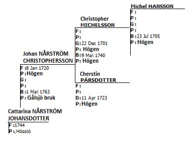 Michel Christopersson född 30:e juni kristnad 7 juli 1723 i Högen, Nårns bruk.